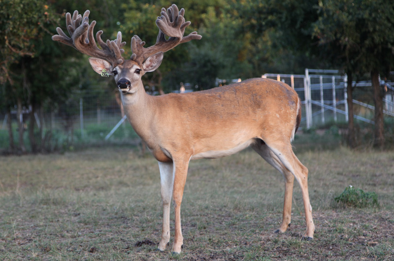 He has the look. He has the frame. He also has the pedigree! This is basically perfection in a 2yr old buck! How many 2yr olds have you ever seen that are this wide, that have an 8×7 main frame and have multiple breeder bucks out of his sire and the dam? For a 2yr old to have this look and also have this many inches is almost unheard of! Gladiator XL has the potential to reach superstar status at an early age. Anyone serious about breeding knows how powerful Maxbo XL and Gladiator II are but, what makes this buck special is his mother and grandmother. 846 also has a womb brother named Gladiators Reign that is a breeder buck. Adding to that she has another 1/2 sister (same mother, Purple 302) that has a 300″+ 3yr old on the ground as well! Purple 302 is a daughter out of a Mighty Mouse son. We all know how strong that TX line is and it is obvious when you look at the pass down we are seeing through her and her daughters. This pedigree is loaded with production and big names. If you are serious about growing big framed deer that look awesome you need Gladiator XL in your herd!